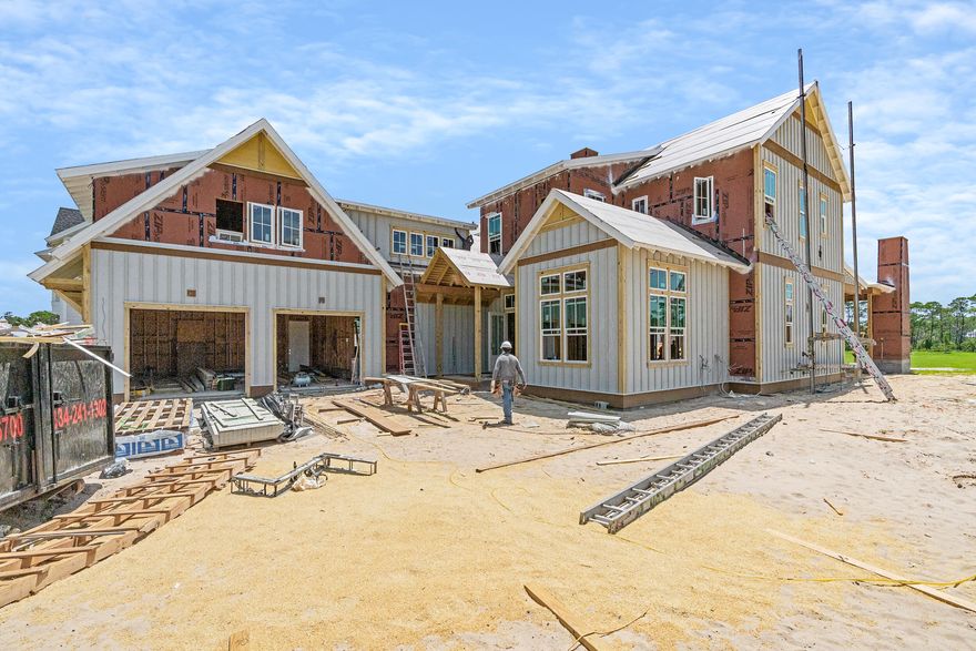 Architectural details such as James Hardie siding, KDAT wood columns, corrugated metal roofing, and brick accents reinforce the home's enduring quality and craftsmanship. With 8-foot solid core doors, quartz countertops throughout, under-cabinet lighting, and custom millwork in every room, the Evangeline Plan embodies coastal luxury at its finest an exceptional offering in the heart of Powell Landing East at Watersound Origins.